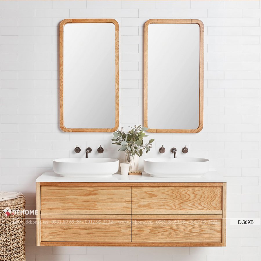 💡 Đặc điểm: Gương có viền gỗ tự nhiên, phù hợp với không gian ấm cúng.