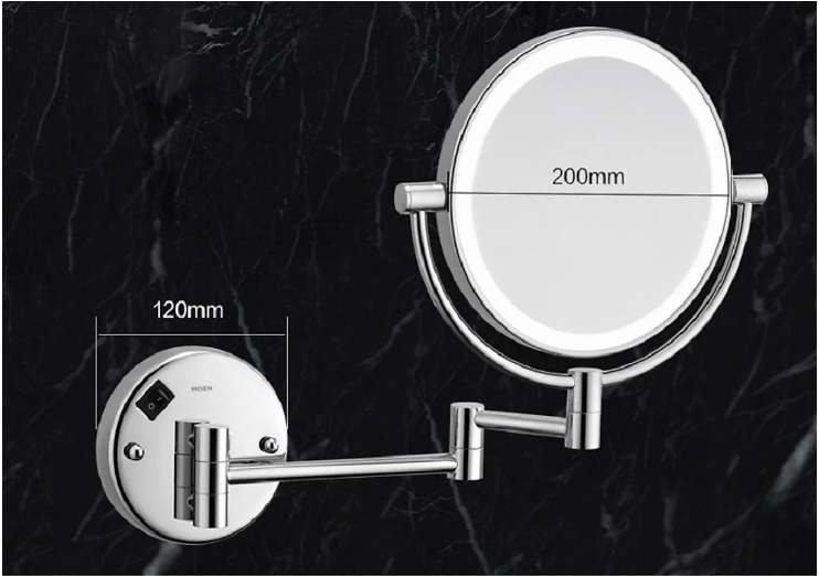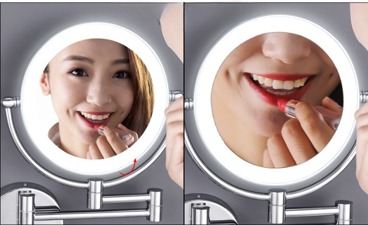 - Gương Đèn Led Treo Tường Phòng Tắm xoay 360 độ 2 mặt có 1 mặt phóng đại x3 là loại gương trang điểm treo tường hiện nay được rất nhiều Khách Sạn ưa chuộng và tin dùng.