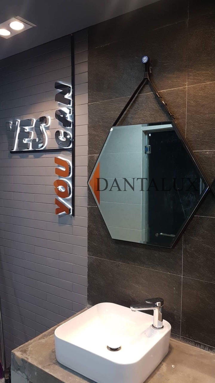 Gương phòng tắm lục giác dây da là mẫu gương trang trí độc đáo mới ra đầu năm 2018 và rất được khách hàng yêu thích, đặc biệt là các khách hàng nam giới bởi kiểu dáng thời trang và khỏe khoắn.