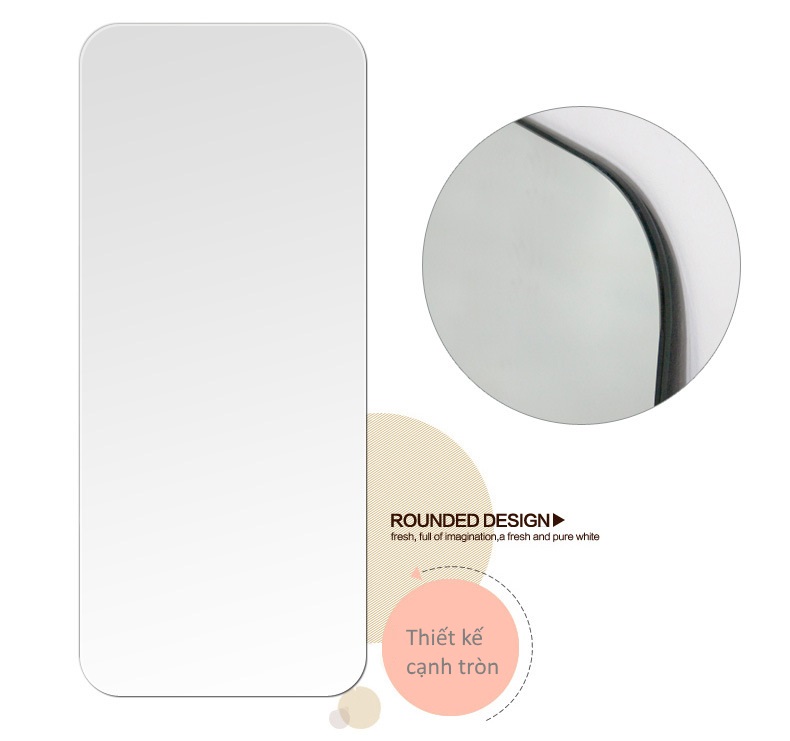 THIẾT KẾ HIỆN ĐẠI: Một chiếc gương được thiết kế theo ý tưởng của chiếc điện thoại Iphone. Chiếc gương hình chữ nhật được mài bo góc tinh xảo này là một thiết kế rất linh hoạt. Với kích thước 60cm x 165cm. Lớp bảo vệ bạc cao cấp của chúng tôi ngăn ngừa sự ăn mòn trong môi trường ẩm ướt. Làm cho chiếc gương này trở thành gương lý tưởng cho phòng tắm, phòng trang điểm hoặc bất kỳ phòng nào khác trong nhà của bạn.