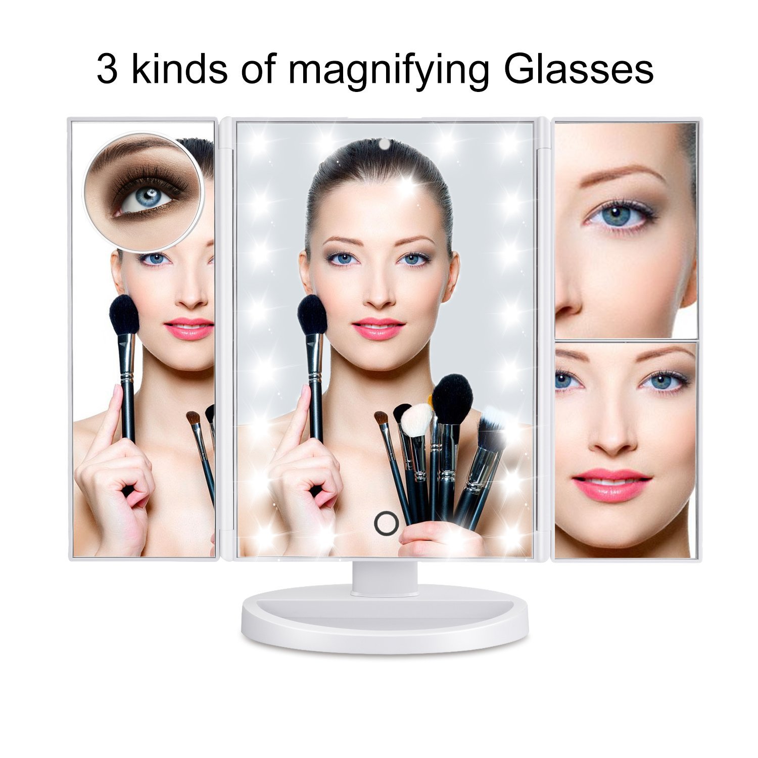 - TRI-FOLD VÀ 180 ° THIẾT KẾ VĂN BẢN THIẾT BỊ VÒI: Thiết kế ba lần của gương mỹ phẩm này có thể bảo vệ gương khỏi bụi và trầy xước hoặc vỡ, ngoài ra, bạn có thể mang theo gương trang điểm này một cách dễ dàng sau khi gập gương vanity và tháo rời căn cứ. Gương trang điểm có thể được xoay tự do và cố định ở mọi góc độ mà bạn cảm thấy thoải mái nhất.