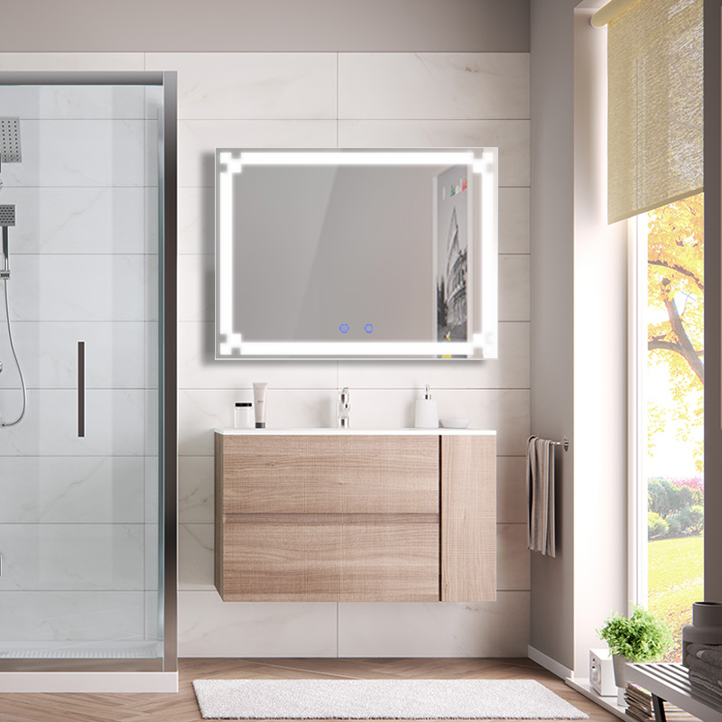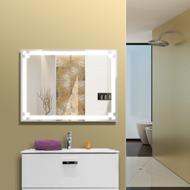 – Gương đèn led phòng tắm được thiết kế với phím cảm ứng ,đèn LED âm bên trong . Một chạm nhẹ , gương sẽ bừng sáng giúp không gian phòng tắm – bàn trang điểm lung linh và huyền diệu hơn !
