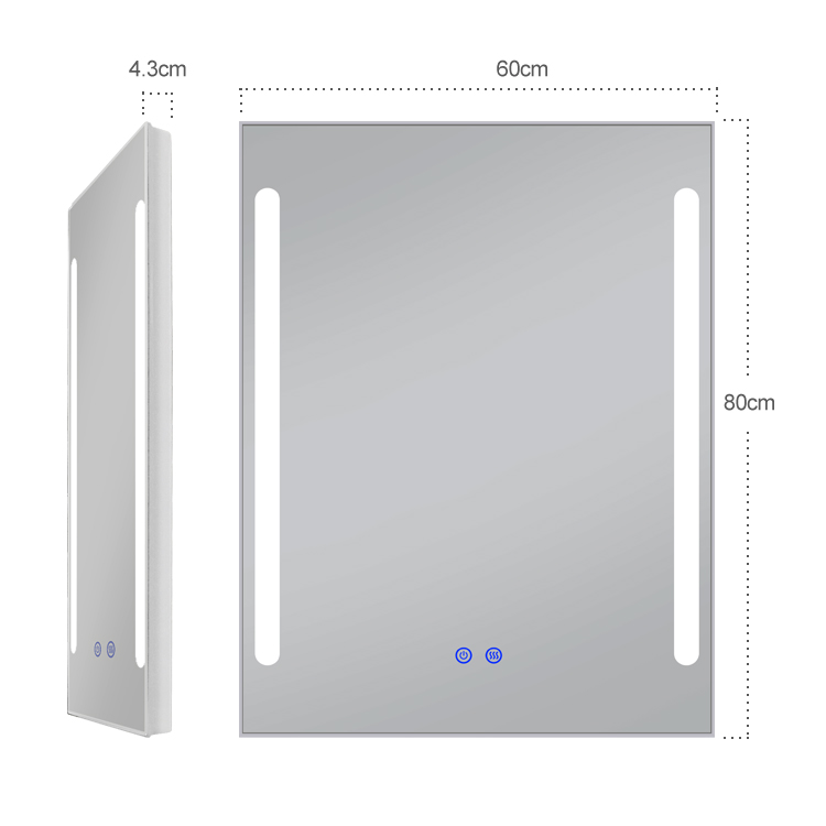 THIẾT KẾ ĐỘC ĐÁO: Một chiếc gương điện hiện đại, mang tính công nghệ nhất hiện nay . Chiếc gương nhà tắm hình chữ nhật cách điệu bởi các đường nét hai bên. Phá vỡ đi sự đơn điệu của chiếc gương bình thường .Một thiết kế rất linh hoạt. Với kích thước 60 x 80cm gương này có cạnh vát 1cm và hiện đại. Lớp bảo vệ bạc cao cấp của chúng tôi ngăn ngừa sự ăn mòn trong môi trường ẩm ướt. Làm cho chiếc gương này trở thành gương lý tưởng cho phòng tắm, phòng trang điểm hoặc bất kỳ phòng nào khác trong nhà của bạn. Với các tính năng nổi bật :